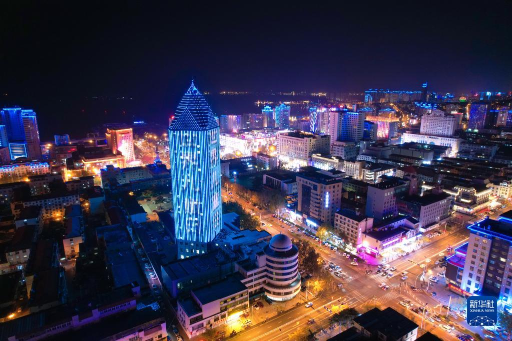 11月20日,山東威海標志性建筑為世界兒童日亮燈。