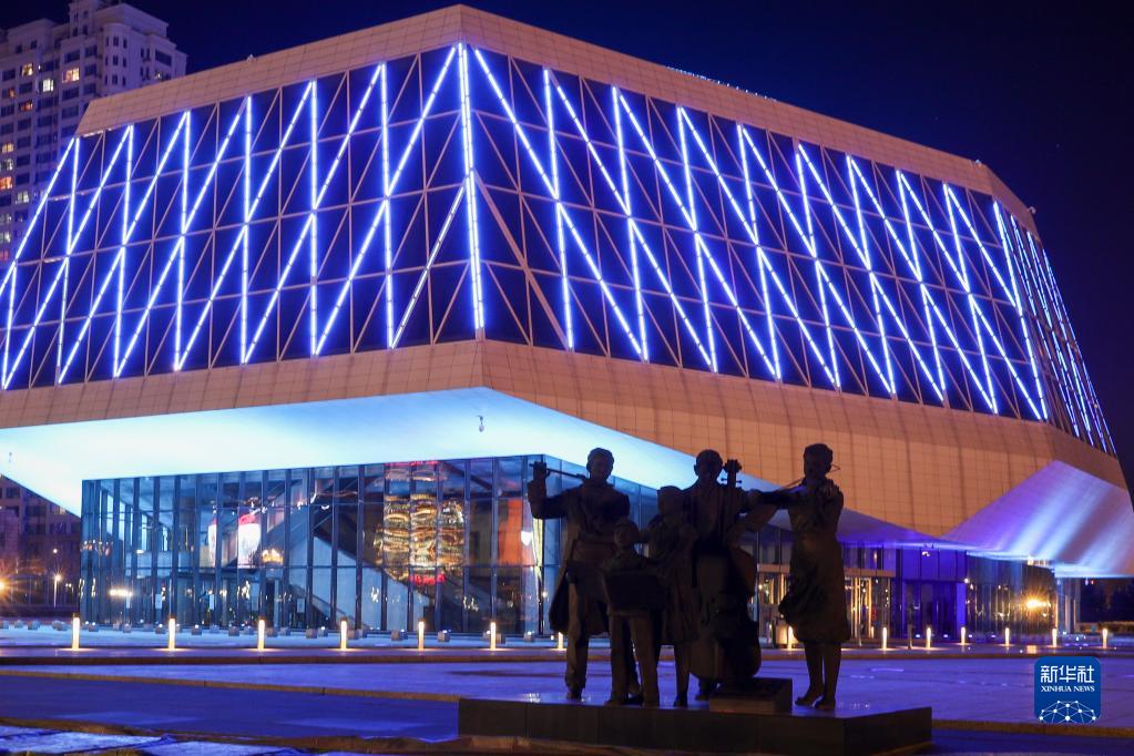 11月20日,哈爾濱音樂廳為世界兒童日亮燈。