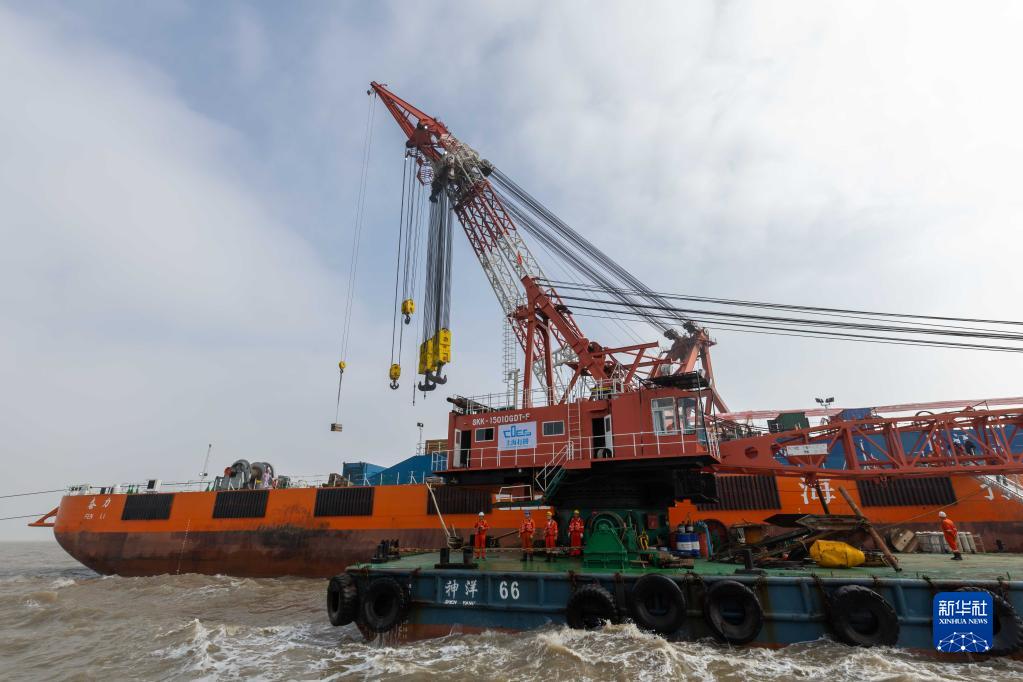 采用世界首創的“弧形梁非接觸文物整體遷移技術”, 我國迄今水下考古發現的體量最大的木質沉船——長江口二號古船21日在長江口水域成功實施整體打撈。