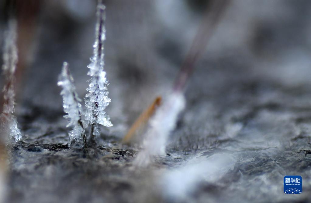 11月13日,在云南省迪慶藏族自治州香格里拉市納帕海,湖面上的水草結(jié)了冰。