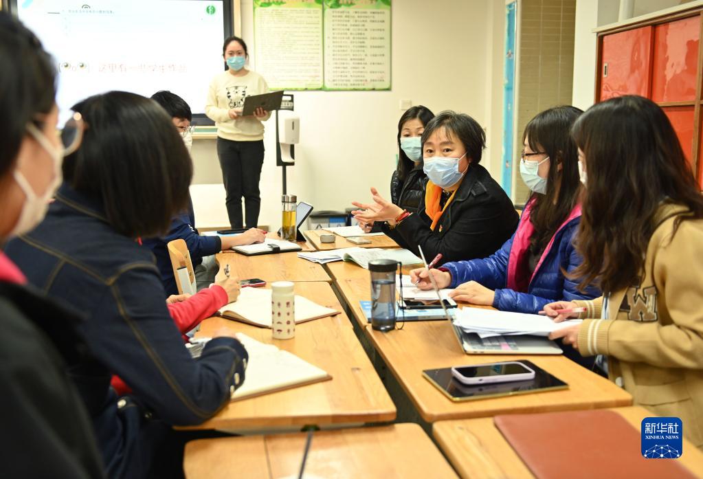11月18日,在北京第二實驗小學,蘆詠莉與教師們進行教研交流。