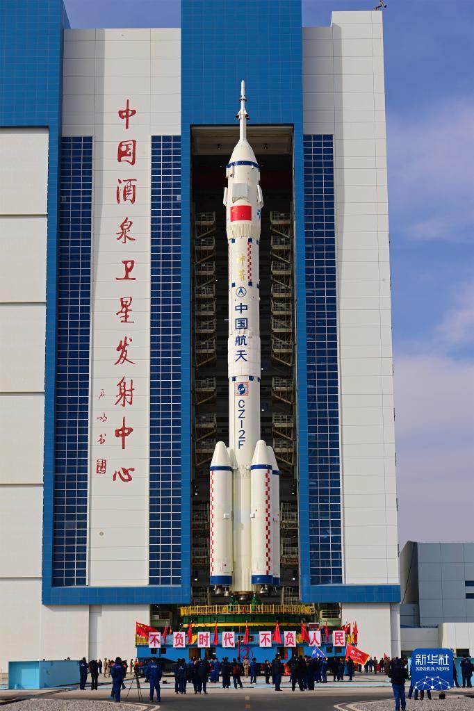 11月21日,神舟十五號載人飛船與長征二號F遙十五運載火箭組合體準備轉(zhuǎn)往發(fā)射區(qū)。