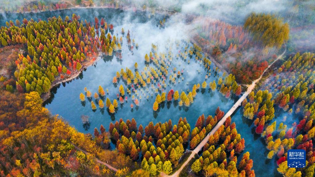 近日,云南省昆明市盤龍區(qū)滇源街道甸尾村水杉濕地的水杉林色彩艷麗,景色如畫。