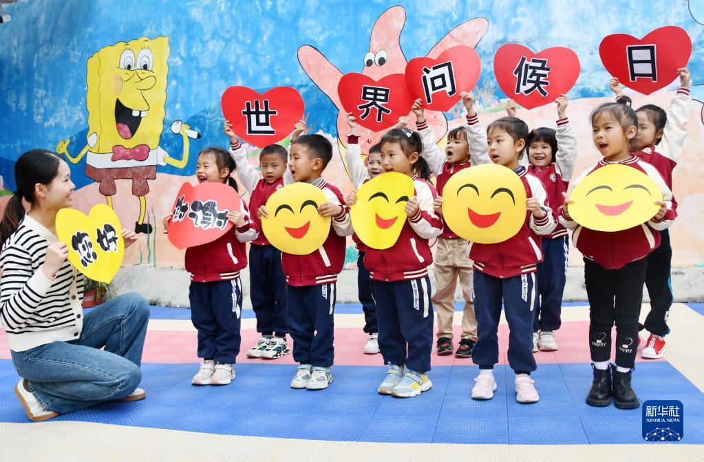 當日是“世界問候日”,一些學校舉行豐富多彩的主題活動,通過多種方式引導孩子們養成和善、文明的行為習慣。