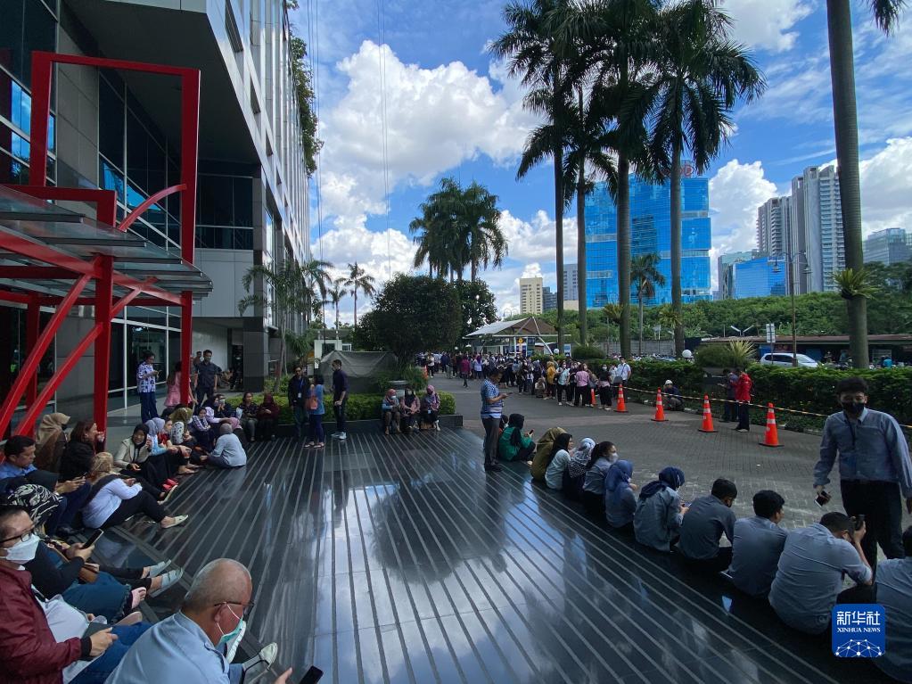 11月21日,在印度尼西亞雅加達(dá),人們?cè)趹?hù)外開(kāi)闊地帶避險(xiǎn)(手機(jī)照片)。