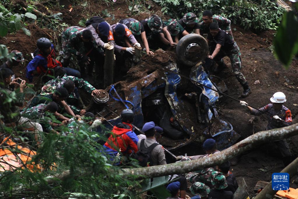 11月21日,救援人員在印度尼西亞西爪哇省展玉開展救援工作。