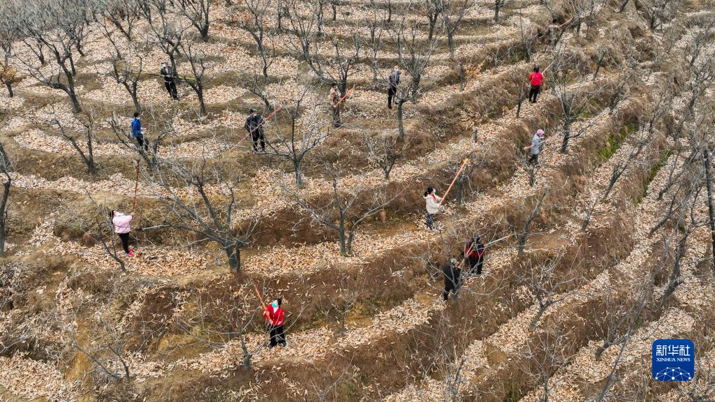 11月22日,河北省遵化市侯家寨鄉禪林寺村,農民在栗樹果園剪枝(無人機照片)。