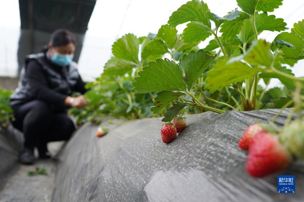 11月22日,河北省邢臺市內丘縣一家農業生態園的員工在管護草莓。