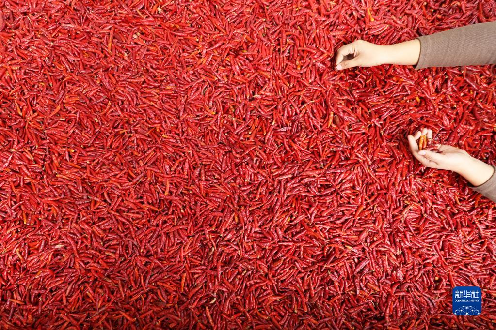 11月22日,河北省唐山市豐潤區姜家營鄉姜家營村農民在場院分揀辣椒。
