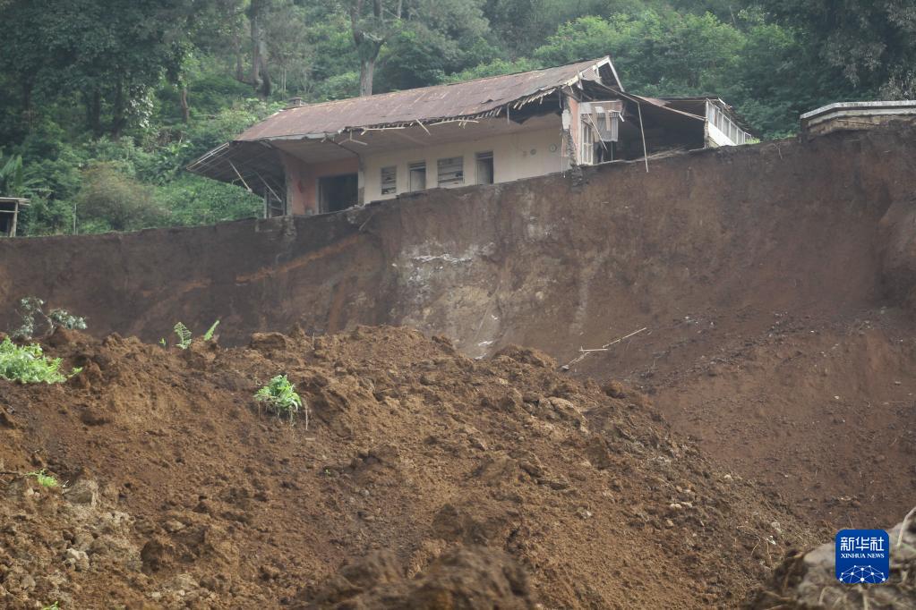 這是11月22日在印度尼西亞西爪哇省展玉地區地震震中附近拍攝的山體滑坡現場。