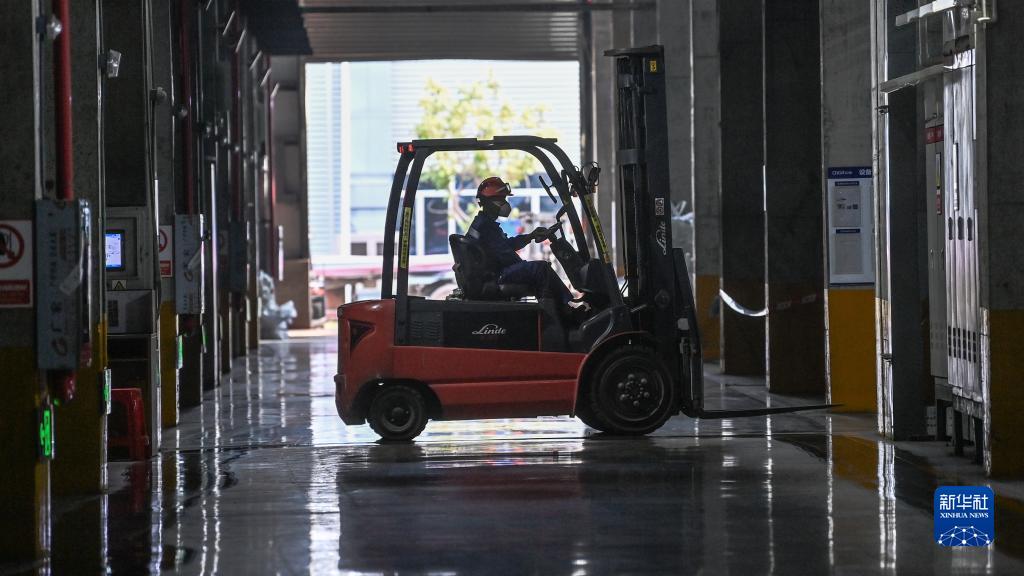 11月21日,在廣西中偉新能源科技有限公司生產(chǎn)車間,一名黨員突擊隊員在調(diào)運新能源材料。
