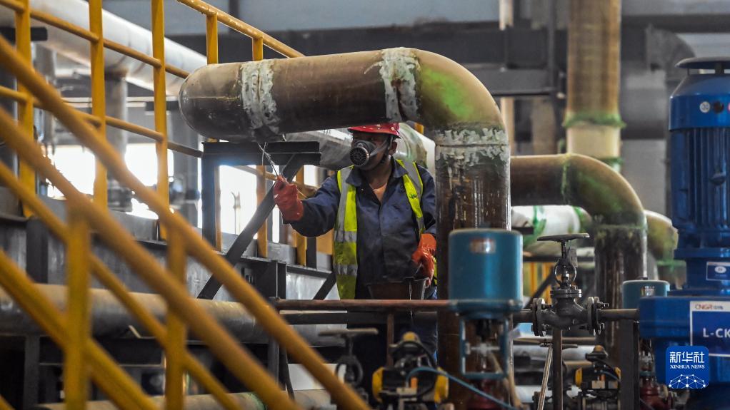 11月21日,在廣西中偉新能源科技有限公司生產車間,一名老黨員在作業中。