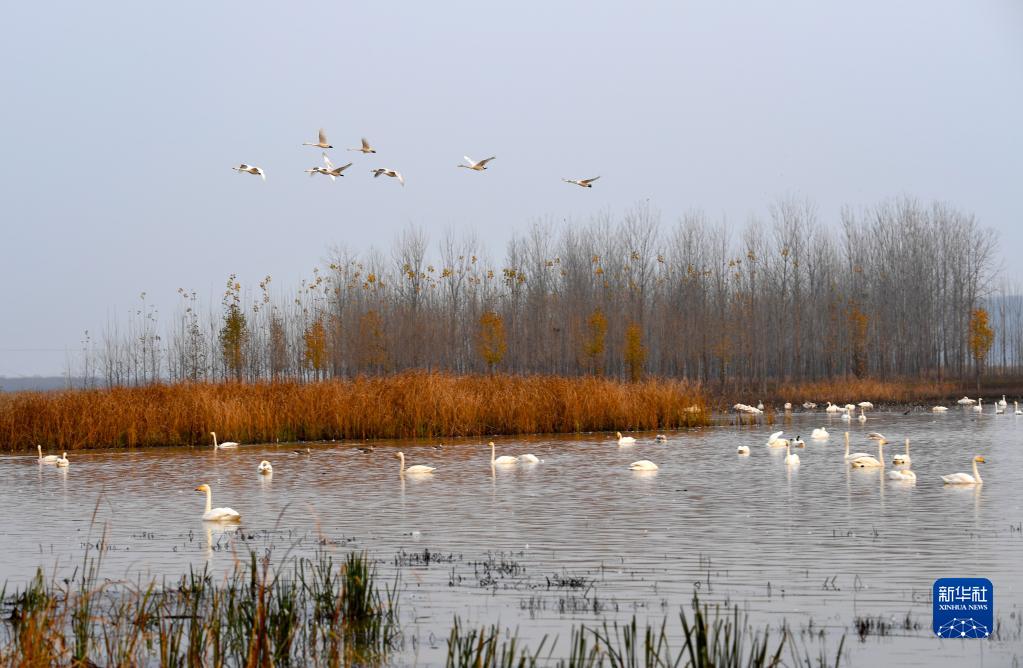 初冬時節(jié),大批天鵝陸續(xù)南遷來到河南省三門峽市黃河濕地棲息越冬。近年來,當(dāng)?shù)卮罅ν七M(jìn)黃河濕地生態(tài)建設(shè),加強(qiáng)天鵝保護(hù)力度,來這里越冬的天鵝數(shù)量逐年增多。