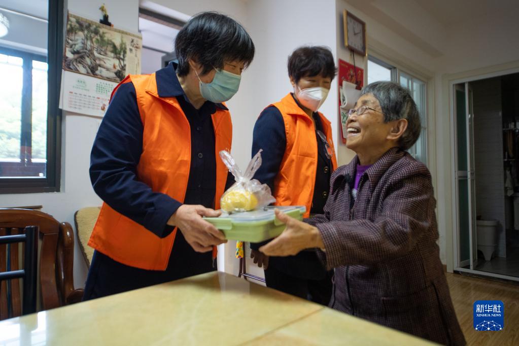 11月23日,南星街道白塔嶺社區志愿者為行動不便的老年人提供愛心送餐服務。