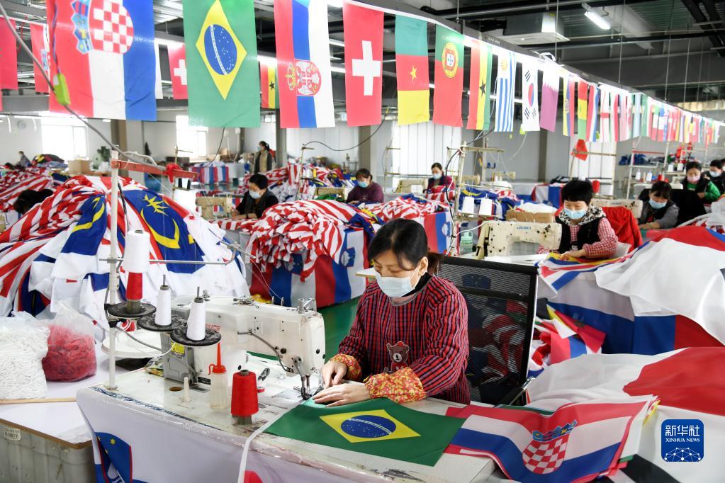 世界杯如火如荼,山東青島一家專門為世界杯提供旗幟的企業正加緊生產海外客商追加的訂單,主要是參賽國國旗、足球標識旗、串旗等,并會隨時根據賽況及出線球隊變化調整生產計劃。