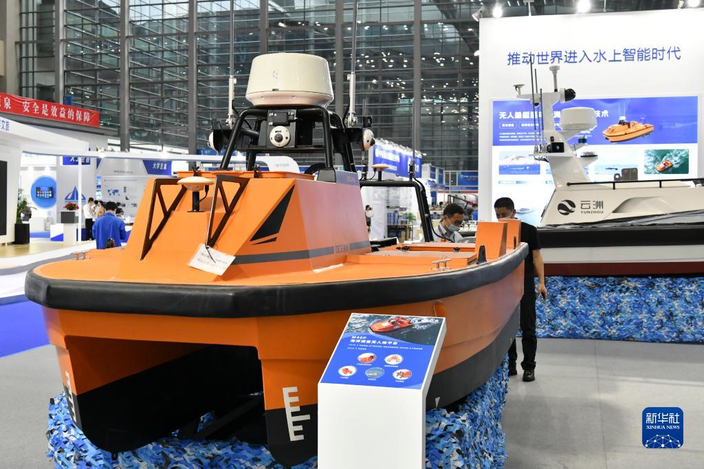11月24日,觀眾在海博會現場了解云洲無人船。