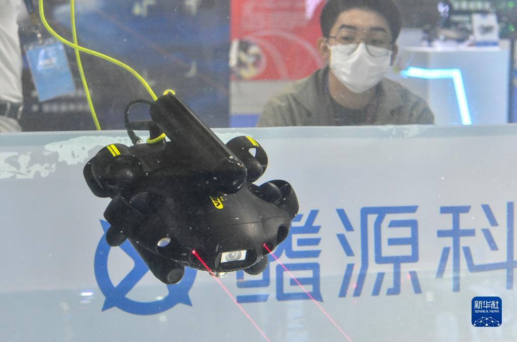 11月24日,一款水下機(jī)器人在海博會(huì)現(xiàn)場(chǎng)進(jìn)行展示。