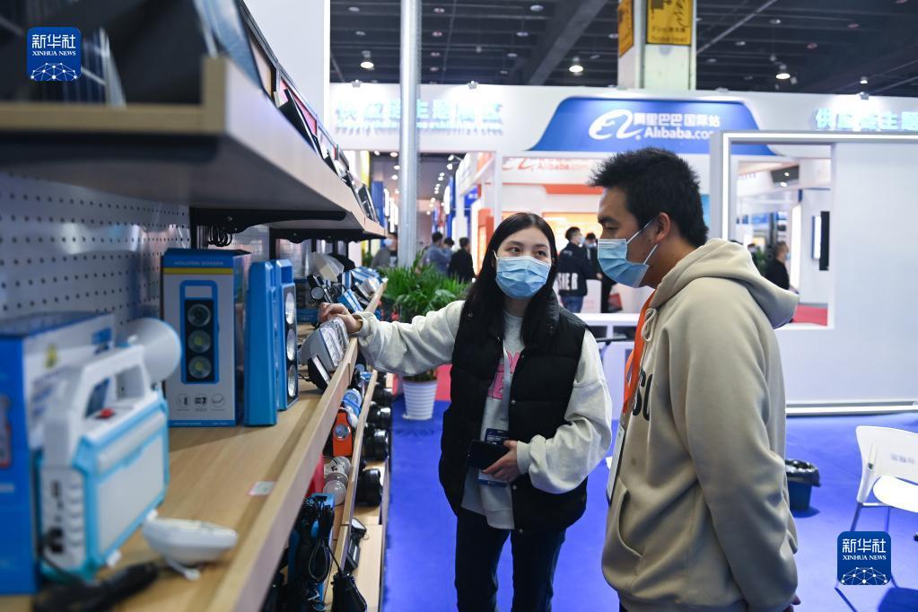 11月24日,觀眾在義博會新能源主題展區參觀太陽能便攜產品。