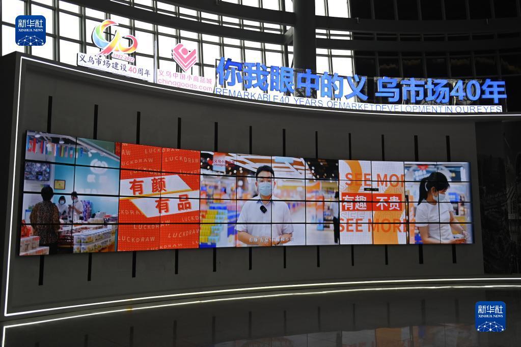 11月24日拍攝的義烏市場(chǎng)建設(shè)40周年主題館的視頻展區(qū)。