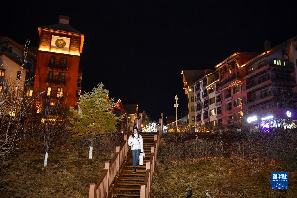 結束一天的工作,王爽前往班車點乘坐班車回家(11月20日攝)。吉林市萬科松花湖度假區的前臺接待人員王爽家住在滑雪場山腳下的豐滿區段吉村。三年前,她辭去了在城里的工作,選擇來到距家里只有7公里的滑雪場工作。“冰雪產業前景廣闊,能把我們留在家鄉。”王爽說。