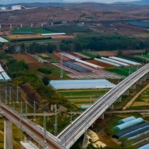 彌(勒)蒙(自)高鐵位于云南省紅河哈尼族彝族自治州境內(nèi),正線(xiàn)長(zhǎng)約107公里,設(shè)計(jì)開(kāi)行旅客列車(chē)時(shí)速目標(biāo)值為250公里,目前工程建設(shè)進(jìn)展順利,沿線(xiàn)車(chē)站建設(shè)基本完成。