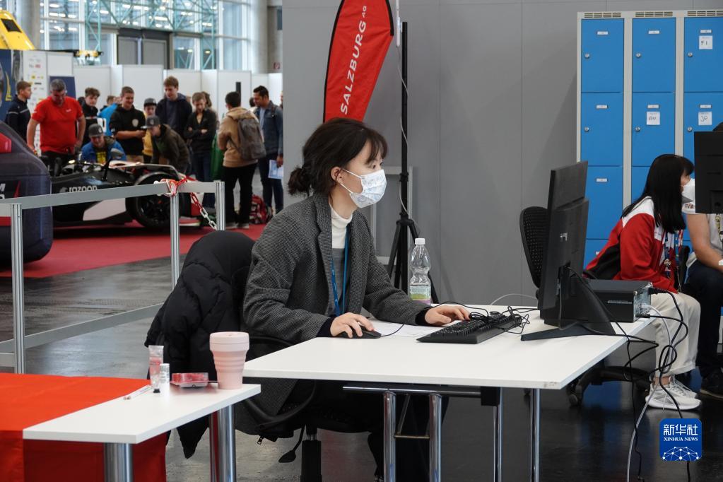 11月24日,來自上海第二工業(yè)大學的朱珂在奧地利薩爾茨堡參加2022年世界技能大賽特別賽奧地利賽區(qū)貨運代理項目比賽。