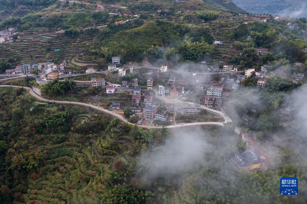 11月24日拍攝的浙江省麗水市青田縣小舟山鄉丁坑村(無人機照片)。