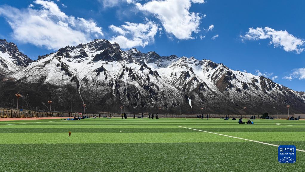 這是西藏那曲市嘉黎縣中學(xué)的足球場(chǎng)(3月30日攝)。