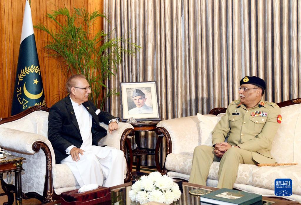 11月24日,巴基斯坦總統阿爾維(左)在首都伊斯蘭堡會見候任參謀長聯席會議主席薩希爾·沙姆沙德·米爾扎。