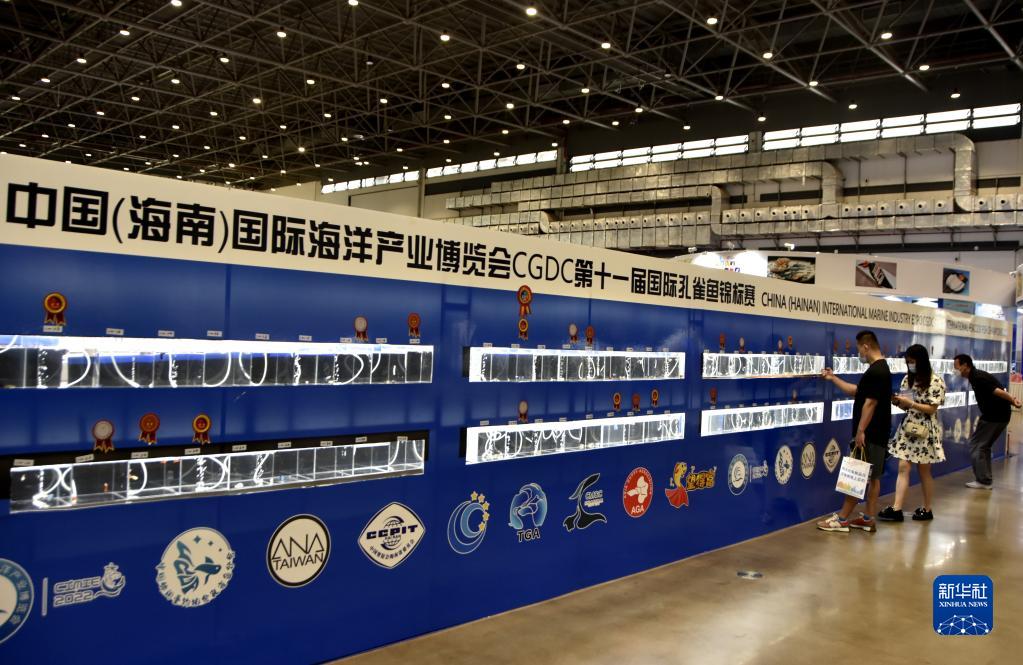 11月25日,觀眾在2022年中國(海南)國際海洋產業博覽會上觀賞孔雀魚。