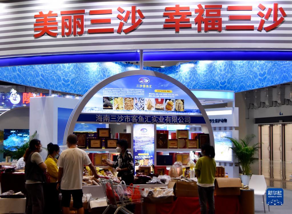 11月25日,觀眾在2022年中國(海南)國際海洋產(chǎn)業(yè)博覽會上購買海產(chǎn)品。