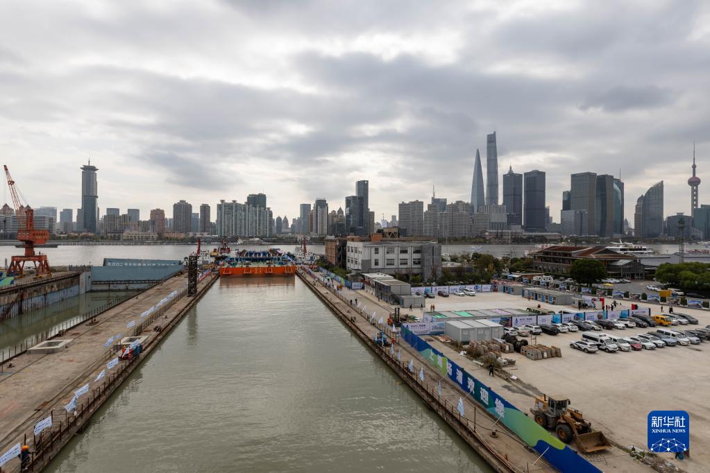 11月25日,“奮力”輪載著長江口二號古船進入上海船廠舊址1號船塢。