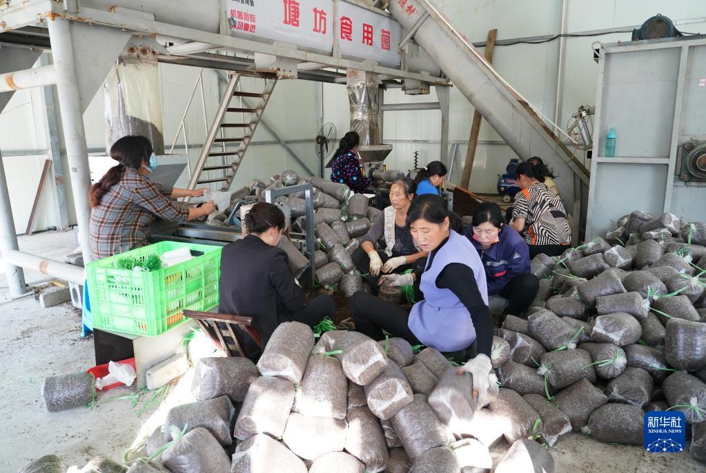 在陜西安康市平利縣廣佛鎮(zhèn)塘坊村一家食用菌企業(yè),由鎮(zhèn)上勞務(wù)公司招來的工人在工作(10月20日攝)。