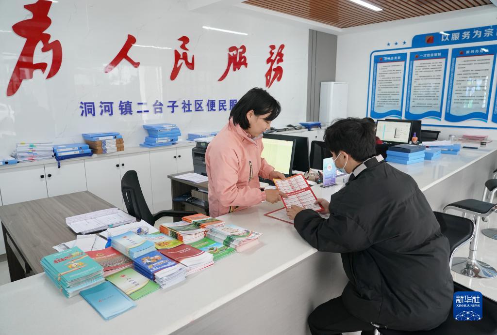 11月22日,陜西安康市紫陽縣洞河鎮二臺子社區居民在社區便民服務室了解就業崗位信息。