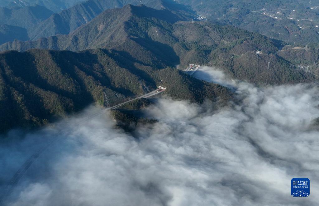 當(dāng)日,湖北宣(恩)鶴(峰)高速公路在云霧中若隱若現(xiàn),美如畫卷。
