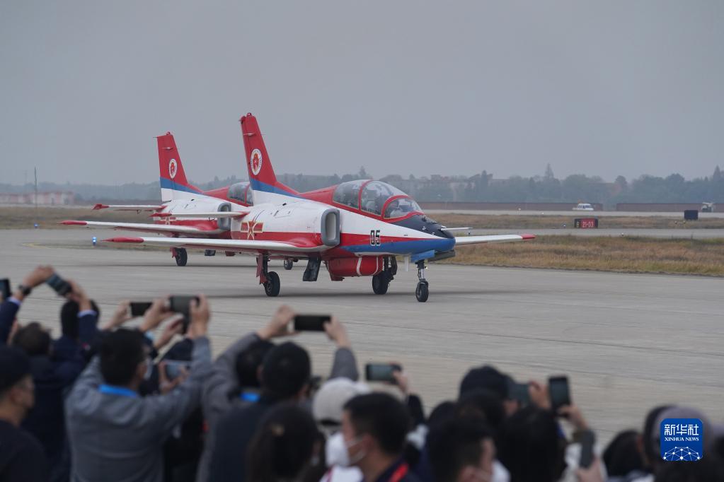 11月25日,空軍航空大學“紅鷹”飛行表演隊在表演結束后從觀眾面前駛過。