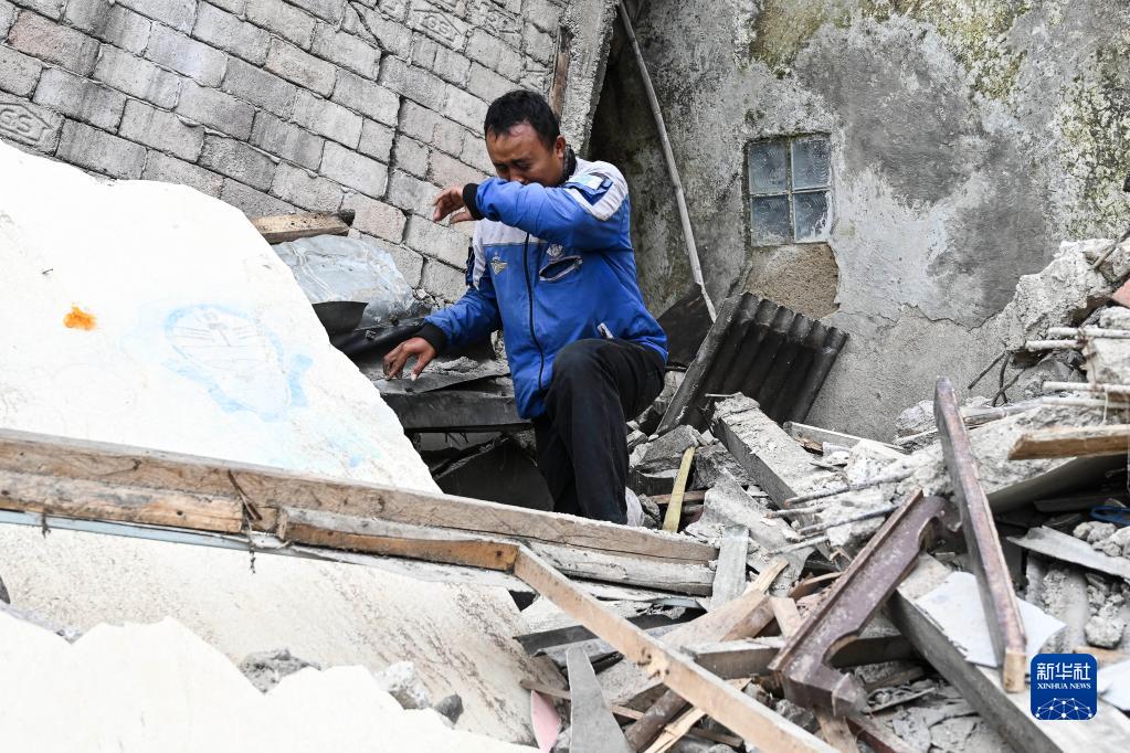 11月23日,一名男子哭泣著在印度尼西亞西爪哇省展玉地區的地震建筑廢墟中尋找女兒。