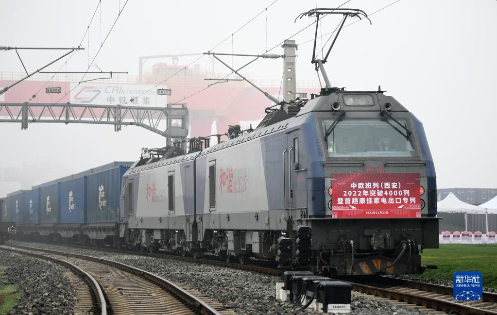 當日,滿載家電產品的X8151次中歐班列從西安國際港站駛出開往歐洲。這是中國鐵路西安局集團有限公司開行的首趟中歐班列家電出口專列,同時也標志著陜西中歐班列2022年開行突破4000列。