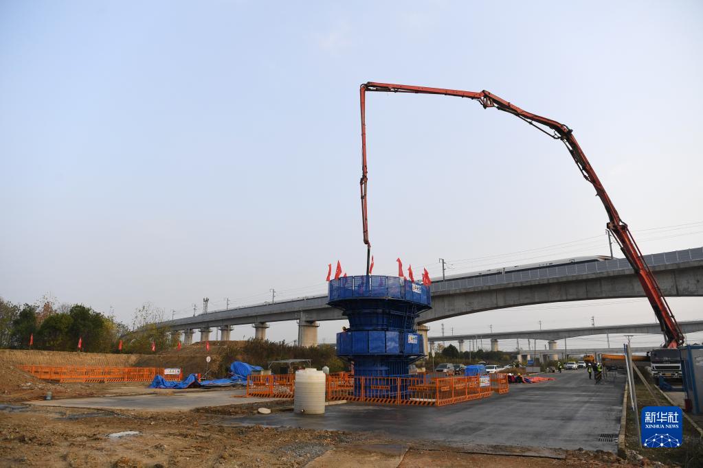 11月26日,中鐵四局施工人員在新建滬寧合高鐵安徽段首根墩身澆筑現(xiàn)場作業(yè)。
