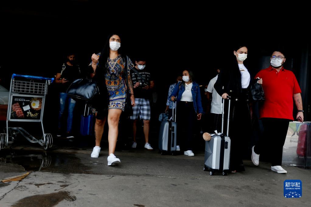 11月26日,旅客在巴西首都巴西利亞國際機場戴口罩出行。