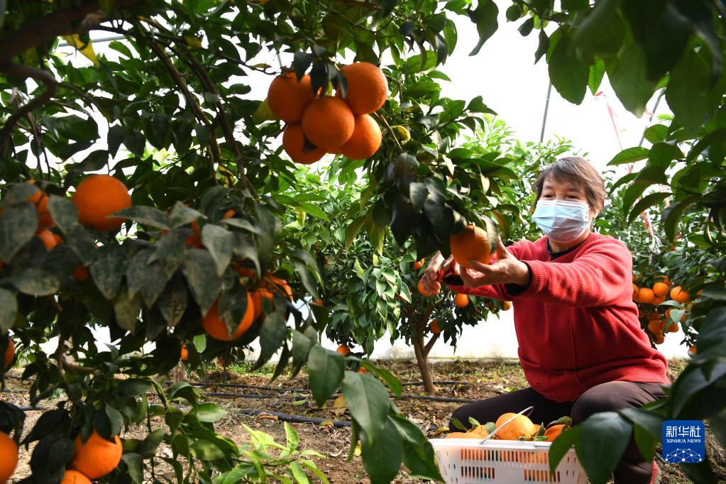 11月26日,村民在肥西縣銘傳鄉王井社區特色蔬果產業園內采摘“紅美人”柑橘。
