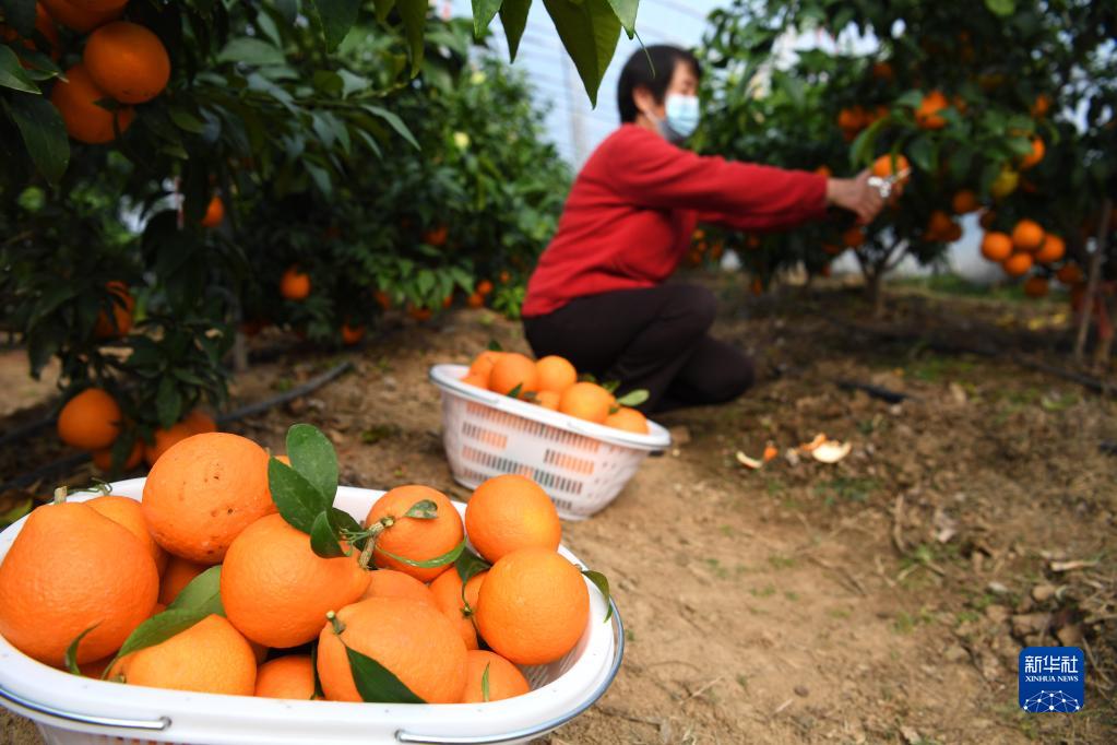11月26日,村民在肥西縣銘傳鄉(xiāng)王井社區(qū)特色蔬果產(chǎn)業(yè)園內(nèi)采摘“紅美人”柑橘。