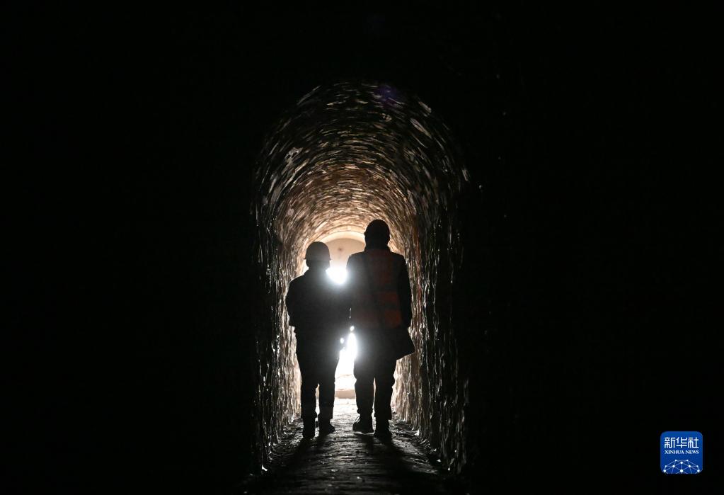 在天津市薊州區白澗鎮,谷叢楠(左)和團隊成員在一處廢棄礦洞實地踏勘(11月25日攝)。