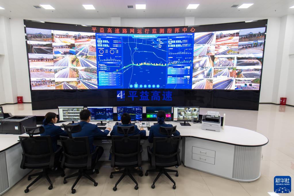 11月28日,工作人員在湖南平益高速路網運行監測指揮中心觀察高速路況等信息。