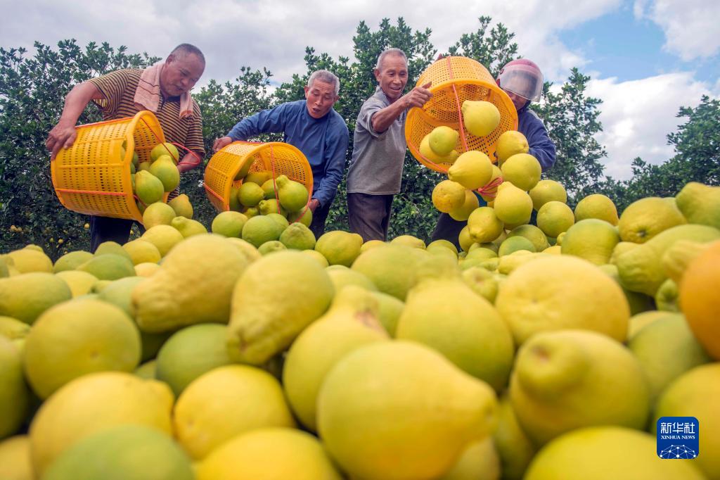 近日,湖南省永州市道縣的沙田柚迎來豐收。當地采取“合作社+基地+農戶”模式,引導群眾大力發展特色水果產業,帶動農民增收。