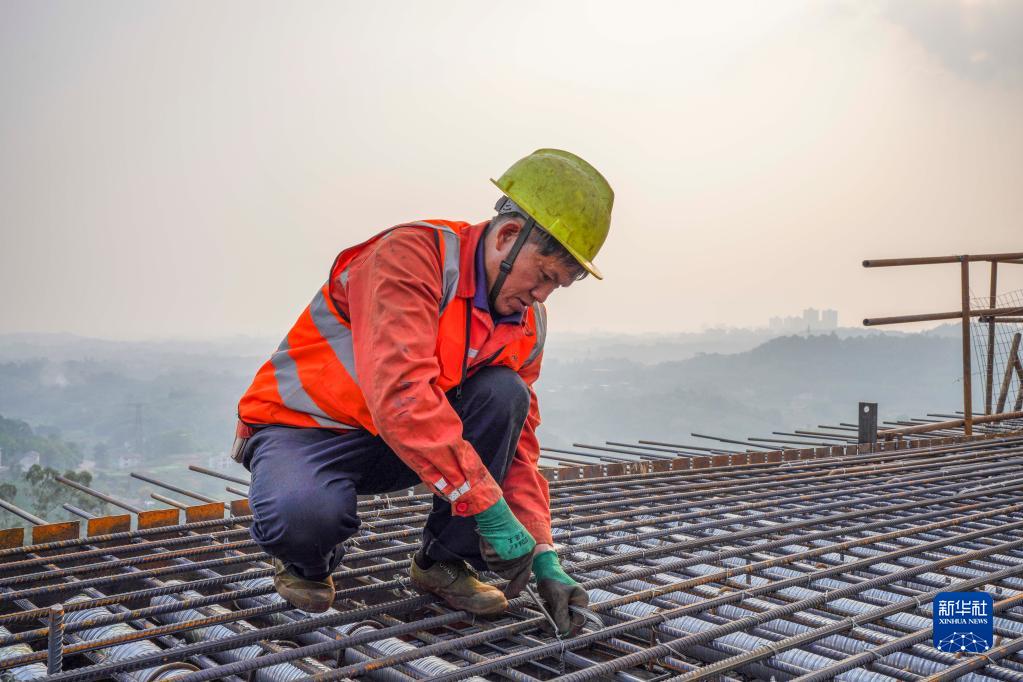 11月28日,工人在渝昆高鐵川渝段華福特大橋施工現(xiàn)場作業(yè)。
