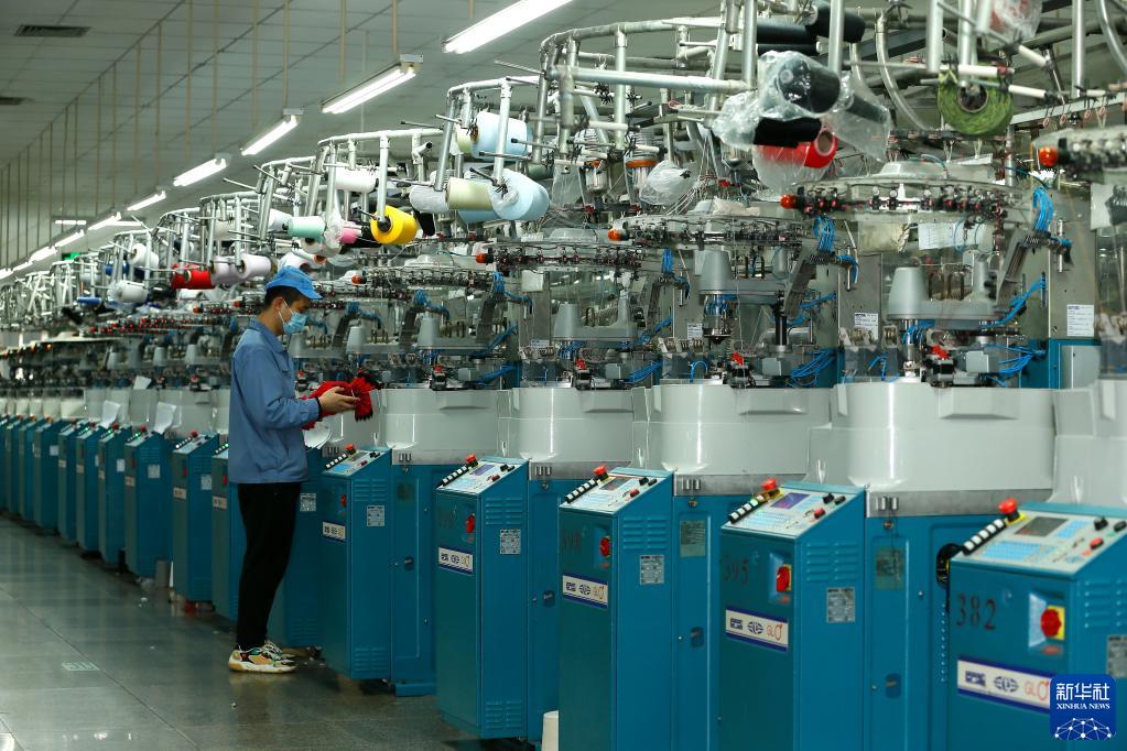 11月29日,山東青島華盛襪業有限公司的制襪工人在生產出口到海外市場的產品。