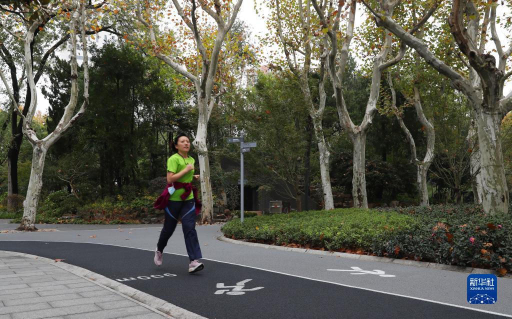 11月18日,一位居民在上海市虹口區和平公園內慢跑鍛煉。