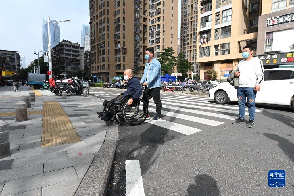 11月28日,輪椅車無障礙通過路面緣石坡道。