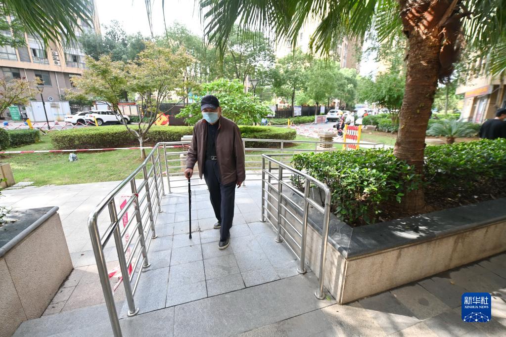 小區路面多坡化改造后,便于老人在小區散步,打通了老人無障礙通行的“最后一階”(11月28日攝)。